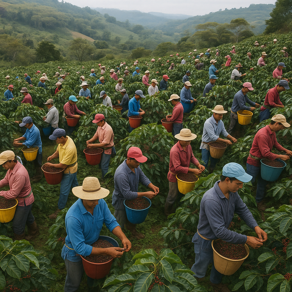 Zber kávy je náročná manuálna práca, ktorú vykonávajú tisíce sezónnych pracovníkov.