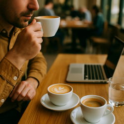 Káva sa často stáva súčasťou osobnej identity – fotka šálky na stole s notebookom alebo knihou buduje atmosféru „slow life“, kreativity a produktivity.