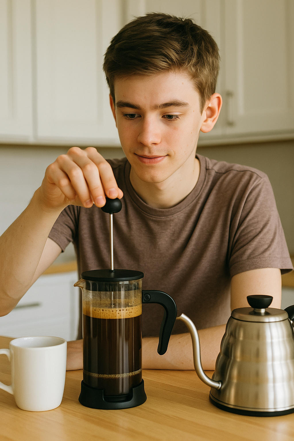 French press je ideálny pre hrubo mletú kávu a stredné praženie. Hodí sa pre tých, ktorí majú radi „hutnejší“ šálok s výraznejšou dochuťou.