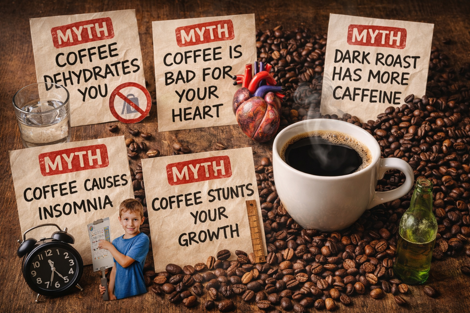 Tento mýtus je populárny, ale zjednodušený. U mladých ľudí je reálnejšia téma spánok, citlivosť na kofeín a množstvo sladkých kávových nápojov. Nie „rast“, ale režim.