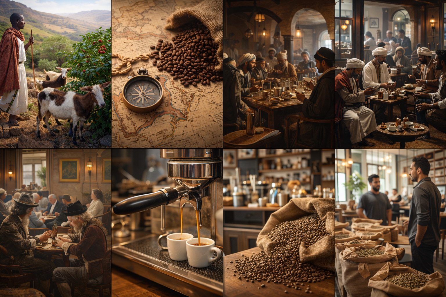 Začiatky kávy sú popretkávané legendami. Podstatné však je, že káva sa šírila preto, lebo bola praktická (povzbudzovala) a zároveň spoločenská (pitie sa stalo rituálom). V niektorých regiónoch sa najprv používala jednoduchšie, postupne sa z nej stal nápoj s pravidlami prípravy a vlastnou kultúrou.